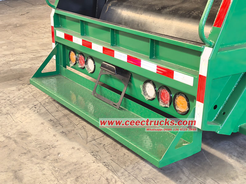 ● Жұмыс кезінде гидравликалық жүйемен басқарылатын сырғанау тақтасы мен қырғыш қоқысты бункерге жылдам итеріп, күшті қысуды қолдана отырып, оның көлемін айтарлықтай азайтады және көліктің жүк көтеру қабілетін арттырады.