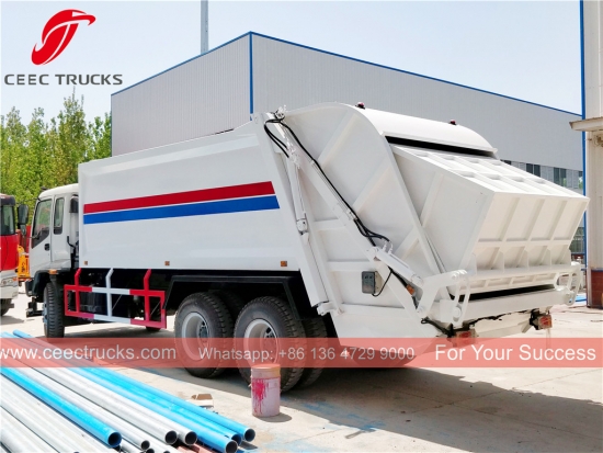 Үздік сапалы ISUZU 20 текше метр қоқыс жинағыш экспорттау Гаити, ISUZU дизель қозғалтқышы, FAST 9 ауысымдық беріліс қорабы, Siemens PLC басқару жүйесі.