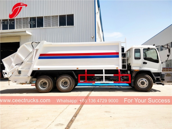 Артқы тиегіш нығыздаушы көлік Isuzu (сонымен қатар Қоқыс сығымдағыш машиналар, Гидравликалық сығымдалған қоқыс таситын көлік, Қоқыс жинағыш машина, Артқы тиегіш машиналар) құрастырылған барлық түрлері сияқты тұрғын үй-жайларда күнделікті қоқыс тасымалдау үшін қалалар, ірі станциялар, порттар мен айлақтар, әуежай және халық тығыз орналасқан өнеркәсіптік және минералдық кәсіпорындар мен әскери бөлімдер сияқты аймақтар.