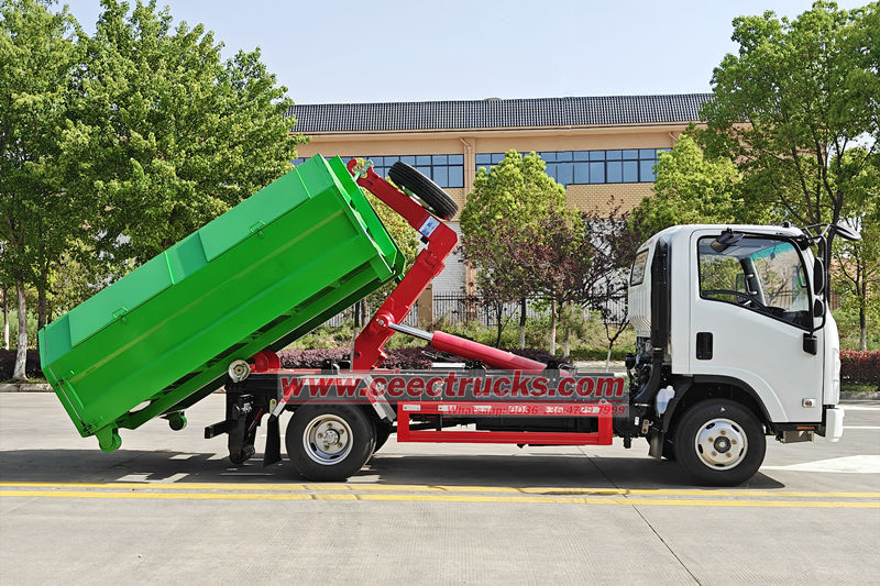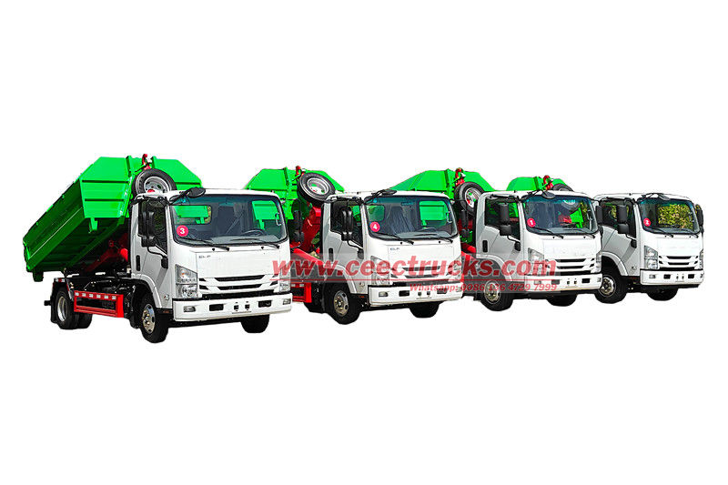 Isuzu NPR ілмекті қоқыс таситын көлік Isuzu ELF ілмекті тиегіш, Isuzu NPR ілмекті жүк тиегіш, Isuzu 10cbm ілмек тұтқасы қоқыс таситын көлік, Isuzu ELF ілмекті қоқыс таситын көлік, Isuzu 4x2 ілмекті тиегіш және т.б. Көлік құралы Isuzu ELF шассиінде модификацияланған, доңғалақ базасы 3360 мм, күшті Isuzu 4HK1-TCG61 дизельді қозғалтқышымен және Isuzu MLD 6 жылдамдықты беріліс қорабымен жабдықталған, қуатты, тегіс ауысу, тамаша жүргізу өнімділігі мен жұмыс тұрақтылығын қамтамасыз етеді.
