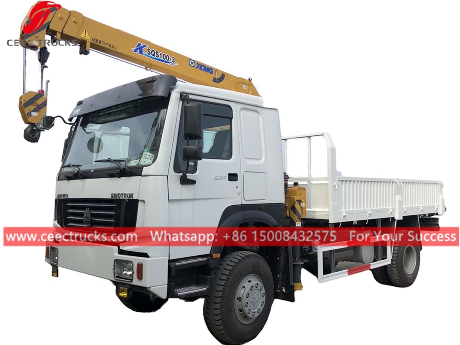 Бом-кран жүк көлігі HOWO (сондай-ақ XCMG краны, UNIC кран, жүк көтергіш кран, жүк көлігі, жүк тиегіші бар жүк көлігі, жүк тиегіші бар жүк көлігі, жүк көтергіш шассиі, артқы краны орнатылған жүк көлігі, кранға орнатылған жүк көлігі, жүк көлігі деп аталады. тиеу кранымен, жебе кранымен, жебе кранымен, топсалы кранмен) қолданылады жүкті көтеру, ауыр заттарды тиеу, тасымалдау және түсіру.