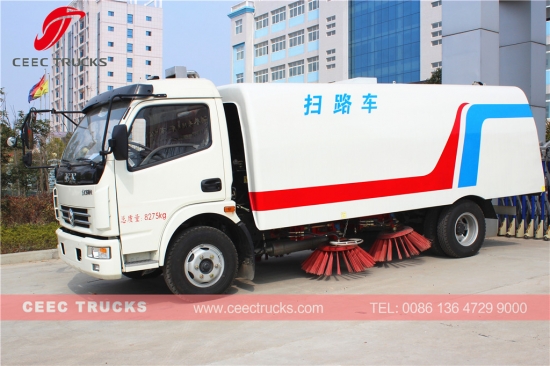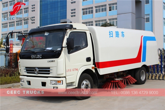 3800 мм доңғалақ базасы шассиі бар Dongfeng брендінің жол сыпырғышы, CHAOCHAI 120HP дизельді қозғалтқышы, 5 ауысымды механикалық беріліс қорабы, тот баспайтын болаттан жасалған танкермен жабдықталған 6 см. Жоғары өнімділікке арналған Италия Brevini маркалы мотор. кескіндеме және логотиптер сұранысқа байланысты