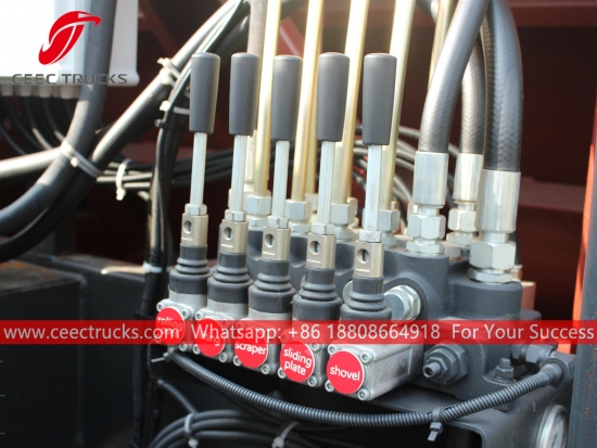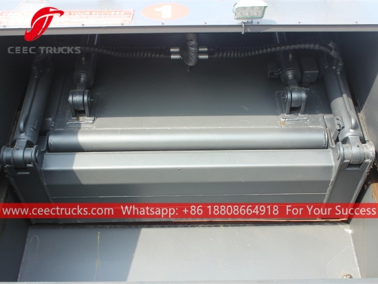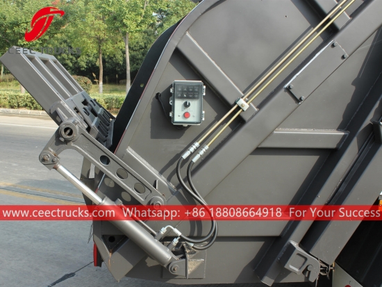 Еуропалық стандартты 6 000 литр сығымдалған қоқыс таситын машинаның жоғарғы корпусы, жоғары берік болат материалдан жасалған тығыздағыш корпусы, импорттық басқару PLC моделі, гидравликалық цилиндрді басқару құрылғысы, оңай жұмыс істеу үшін ағылшын нұсқасының басқару қорабы.