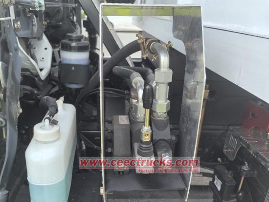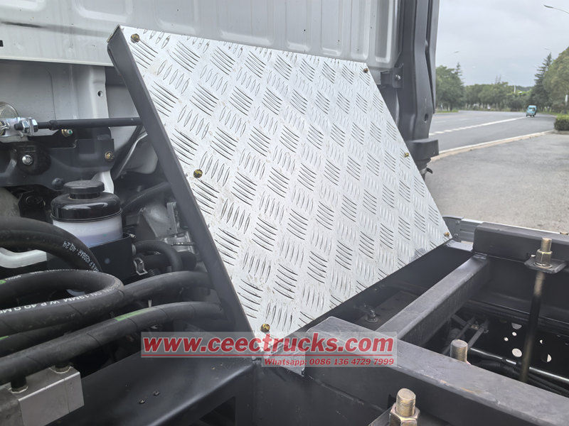 Isuzu шағын самосвалы негізінен шассиден, гидравликалық көтеру жүйесінен, жүк қорабынан және басқару жүйесінен тұрады. Жүк қорабы жоғары берік болат тақталармен дәнекерленген, ал артқы бөлігі тасымалдау кезінде тығыздауды қамтамасыз ету үшін автоматты құлыптау ілмек құрылымын қабылдайды. Гидравликалық жүйе май сорғысынан, көп сатылы гидравликалық цилиндрден, реттеуші клапаннан және жанармай багынан тұрады, ал жүк қорабын көтеру және түсіру кабинадағы джойстик арқылы басқарылады.