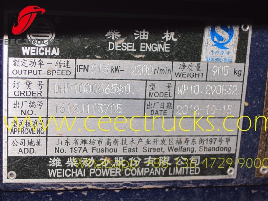 â WEICHAI қозғалтқышы WP10.290E32, еуро 3 шығарылымы, қатты 290ps , және FAST 9 ауысымды механикалық беріліс қорабы