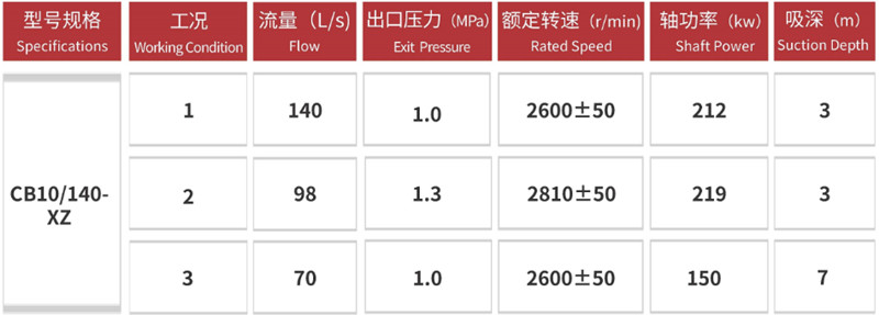 Бұл сорғының номиналды шығыны 70-140 л/с, номиналды қысымы шамамен 1,0 МПа және максималды басы 100 метрден асады. Ол жылдам іске қосу, жоғары сору көтеру және тұрақты сумен қамтамасыз ету мүмкіндігімен ерекшеленеді. Оның күшті сору қабілеті жылдам өздігінен соруға мүмкіндік береді (вакуумды су бұру құрылғысымен пайдаланылғанда шамамен 7 м биіктікке дейін).