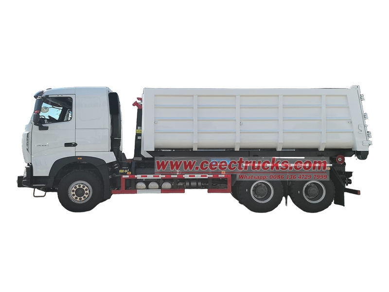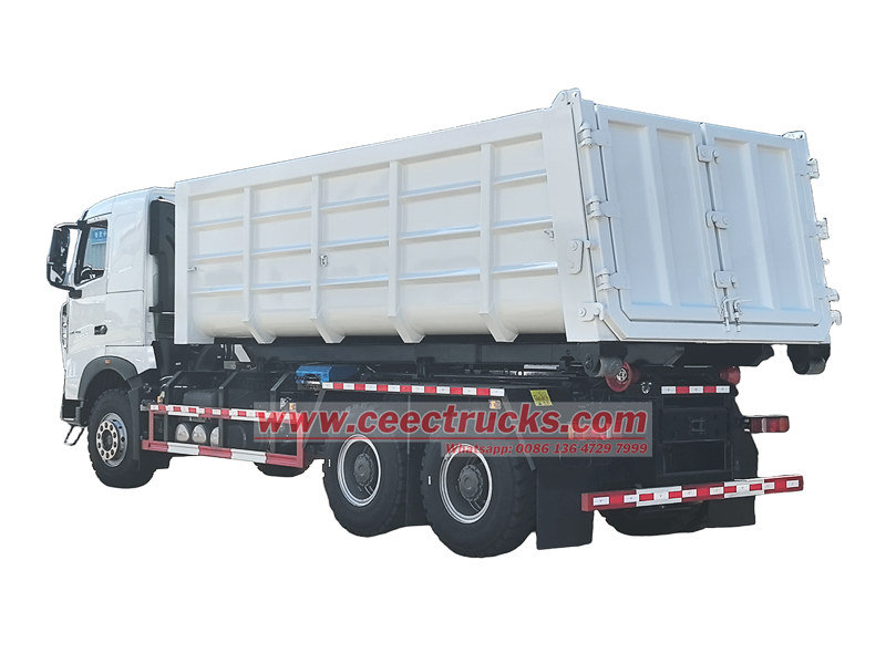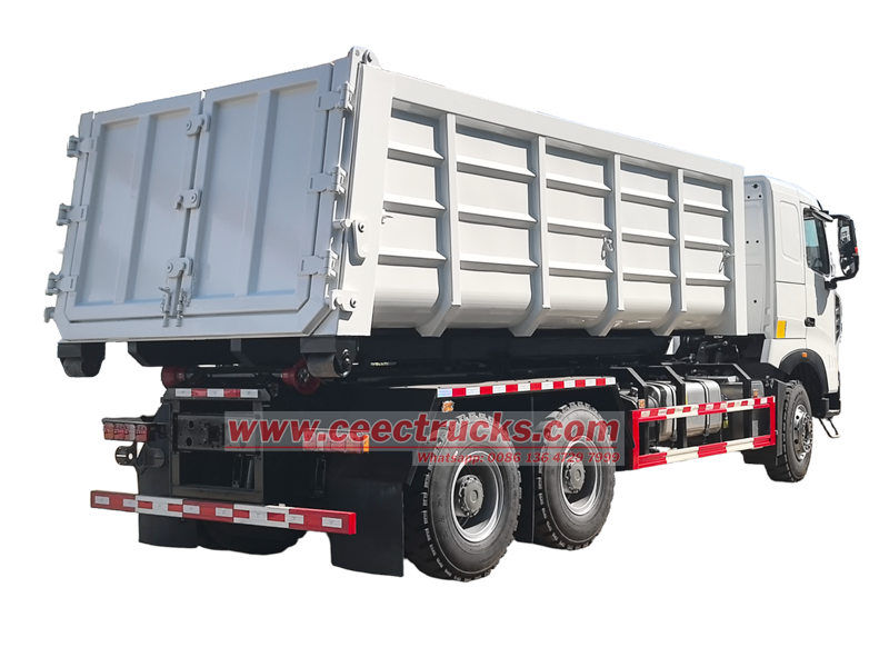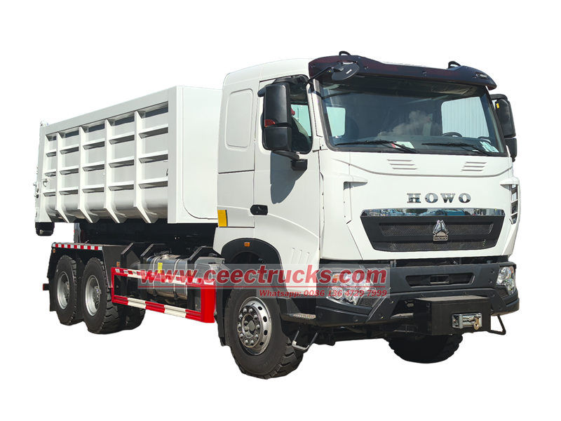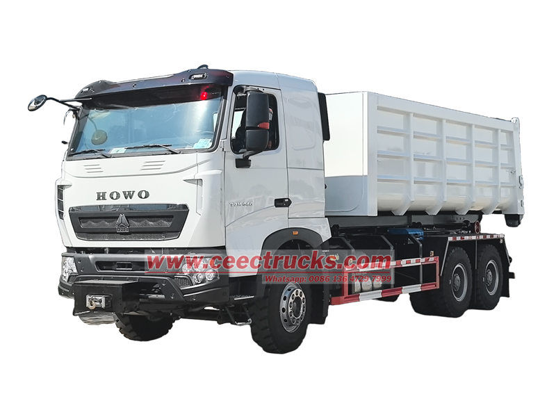 Howo 20 тонналық ілмек тиегіш жүк көлігі - жоғары тиімді санитарлық тазалау көлігі. Оның айрықша ерекшелігі қоқыс жәшіктерін жылдам көтеруге, тиеуге, түсіруге және тасымалдауға мүмкіндік беретін, икемді және ыңғайлы жұмыс істеуді қамтамасыз ететін гидравликалық ілмектер жүйесімен жабдықталған оның алынбалы арбасы мен шассиі болып табылады.