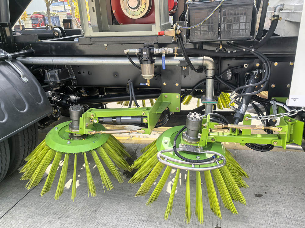â—†Isuzu жол тазалағыш машинасы жоғары берік нейлон қылшықтарын пайдаланады және негізгі және қосалқы щеткалар әртүрлі жол жағдайларына бейімделу үшін жылдамдық пен жердегі қысымды реттеу үшін бірге жұмыс істейді. Тазалау кезінде өлі бұрыш болмауын қамтамасыз ету үшін щетканың бұрышын автоматты түрде реттеуге болады. Сонымен қатар, оның кедергілерді автоматты түрде болдырмау функциясы бар және кедергілерге тап болған кезде тез көтерілуі мүмкін.