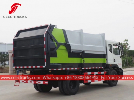 Dongfeng LHD / RHD 4*2 шассиін, CUMMINS 180HP дизельді қозғалтқышын, 8 ауысымды механикалық беріліс қорабын, оңай жұмыс істеуге арналған гидравликалық артқы есікті қолданатын Dongfeng 16000 литр қоқыс жинайтын машина. Барлық кескіндеме және логотиптер талапқа байланысты.