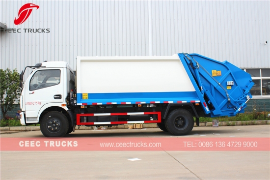 Донфэнг қоқыс сығымдағыш (сонымен қатар Қоқыс сығымдалған көлік, гидравликалық сығымдайтын қоқыс таситын машина, артқы тиегіш қоқыс таситын машина, қоқыс сығымдағыш машинасы, қоқыс компрессоры, кері тиеу қоқыс сығымдау көлігі, қоқыс жинайтын көлік) тұрғын аумақтарда барлық түрлер сияқты күнделікті қоқыстарды тасымалдауға арналған. қалалардың, ірі станциялардың, порттар мен пристандардың, аэродромдардың және өнеркәсіптік және минералдық кәсіпорындар мен әскери бөлімшелер сияқты тығыз қоныстанған аудандардың.