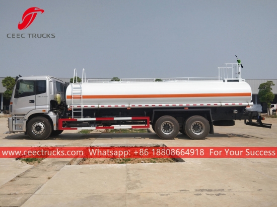15CBM Су жеткізетін жүк көлігі FOTON (сондай-ақ Су цистернасы, су тасымалдайтын жүк көлігі, су бүріккіш машина өндірушісі, сапалы су сорғыш, су шашыратқыш машина деп те аталады) жолды жуу, ағаштар мен көгалдарды көгалдандыру, биік ғимараттарды тазалау, жол мен зауыттар салу үшін қолданылады. Оның шаю, суару, суды тасымалдау және өрт сөндіру функциялары бар.