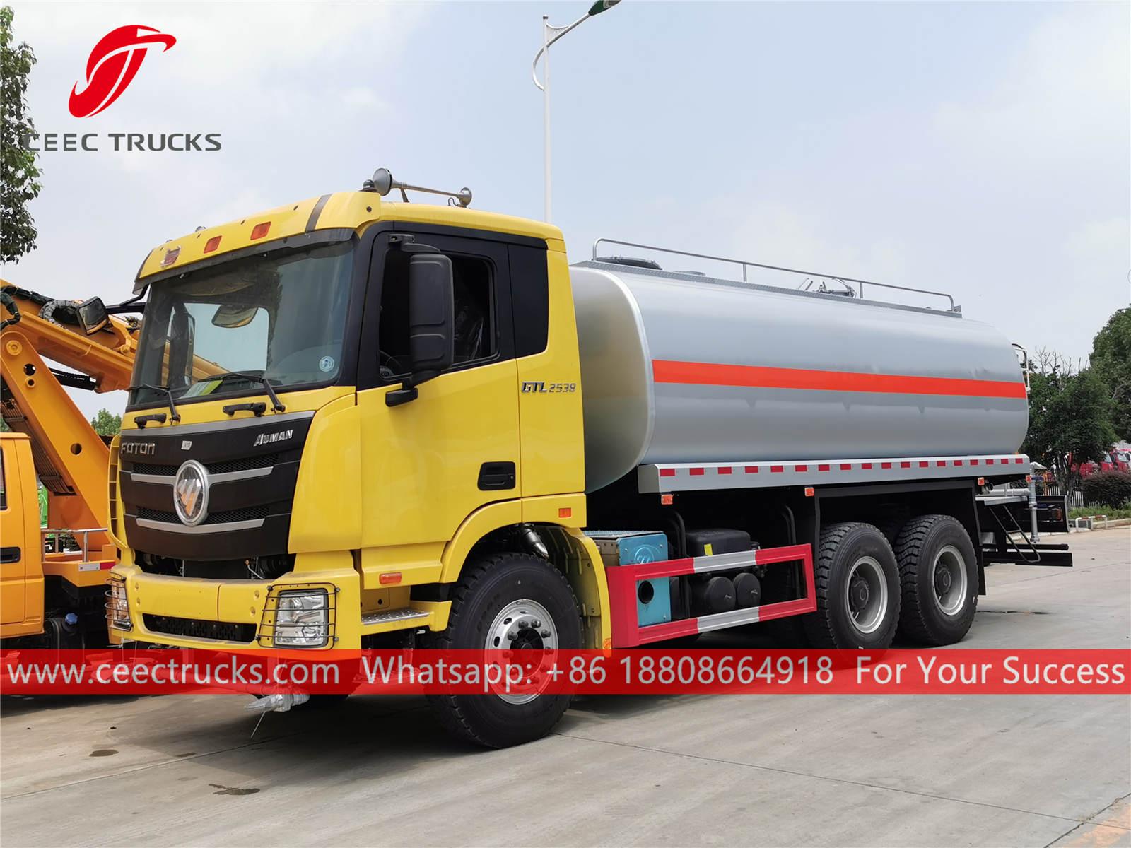 FOTON 20 000L су бүрку машинасы, FOTON 6x4 шассиі, FAST 8 ауысымдық механикалық беріліс қорабы, CUMMINS 245HP дизельдік қозғалтқышы, әйгілі бренд су сорғысы, алдыңғы, ортаңғы және артқы бүрку саптамасы қосымша. Барлық кескіндеме мен логотиптер талапқа байланысты.