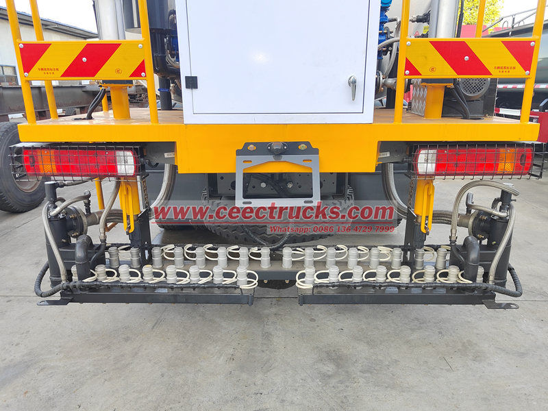 ● Бүрку жүйесі: Бүрку жүйесі асфальтты жол бетіне біркелкі тарататын саптамалар мен саптамалардан тұрады. Асфальттың қалыңдығы мен енін бақылау үшін бүрку жүйесін қажетінше реттеуге болады. Бүрку жүйесі біркелкі және дәл бүркуді қамтамасыз ету үшін гидравликалық жетекпен жабдықталған.