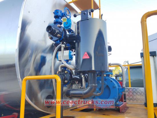 ● Асфальт сақтауға арналған резервуар: Howo Asphalt Spreader жүк көлігі асфальтты сақтауға арналған үлкен сыйымдылықтағы асфальт сақтау цистернасымен жабдықталған. Асфальт – мұнай өңдеу арқылы алынатын тұтқыр, майлы зат.