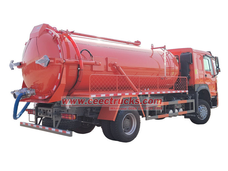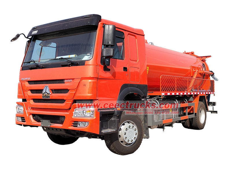 Howo 10 текше метр кәрізді тазартатын цистерна жүк көлігі (Сонымен қатар Howo 10 cbm септик сорғышы, HOWO 300hp вакуумдық сорғыш, Howo 4x2 вакуумдық цистерна, Howo септикалық цистернасы, Howo 4x2 канализациялық тазартқыш машина деп те аталады.) лас су, тұнба, септик сияқты сұйықтықтарды жинау, тасымалдау және шығару үшін қолданылады. Резервуардың корпусы коррозияға қарсы және тотқа қарсы өңдеуден өткен және өте берік. Жоғары қуатты вакуумдық сорғымен біріктірілген ол күшті сорғышқа ие және қалалық және ауылдық қоршаған ортаны басқаруда таптырмас кәсіби жабдық болып табылады.