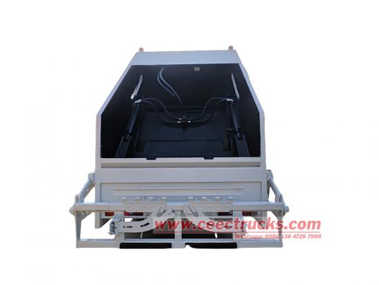 Қоқыс жинау, ықшамдау және түсіру санитарлық тазалау жұмыстарын аяқтаудағы қысылған қоқыс машинасының негізгі процестері болып табылады. Жинау кезеңінде жүргізуші жағынан да, артқы қақпақтан да басқарылатын, артқы жағында орнатылған қоқыс көтеру механизмі 240L/660L стандартты қоқыс жәшігін толтыру құрылғысының саңылауына көтереді. Қоқыс құйылғаннан кейін сырғымалы пластина төмен түседі, қырғыш айналады және қоқысқа кіргізеді, бастапқыда оны нығыздау үшін жабылады және тігінен қырады. Содан кейін жылжымалы пластина жоғары көтеріледі, ал қырғыш қоқысты қоқыс контейнеріне сығады.