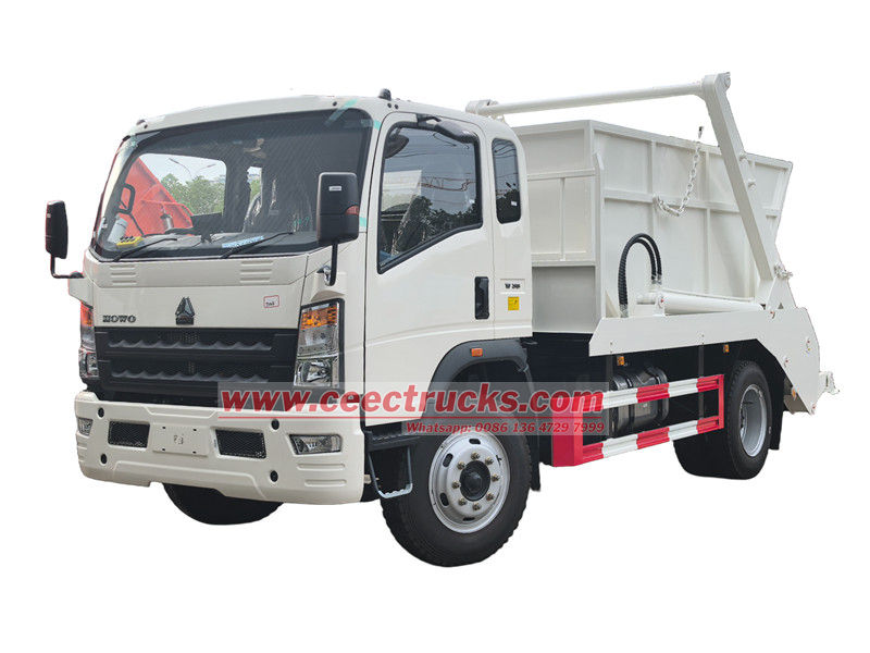 4X4, LHD drive type avaiableHOWO 6CBM скип тиегіш қоқыс таситын көлік – қалалық санитарлық тазалауда және қалдықтарды тасымалдауда кеңінен қолданылатын мамандандырылған көлік. Оның ең көрнекті ерекшелігі - қоқыс жәшіктерін ыңғайлы және тиімді тиеуге, түсіруге және төгуге мүмкіндік беретін гидравликалық бұралмалы иық механизмі.