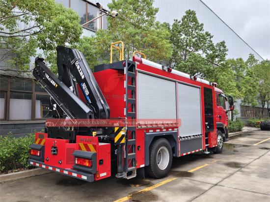 The Howo emergency lighting fire truck, built on the premium Howo C5H chassis, combines superior power with environmentally friendly emissions. With all-wheel drive, it can handle any challenging road conditions. Equipped with an independent power generation system and emergency lighting system, it provides multi-angle, all-round illumination for quickly illuminating rescue routes in the event of a fire. The control panel offers selectable languages and a variety of optional configurations to meet diverse needs. The Howo fire rescue truck is also equipped with a 6 ton folding boom crane at the rear for heavy lifting. A