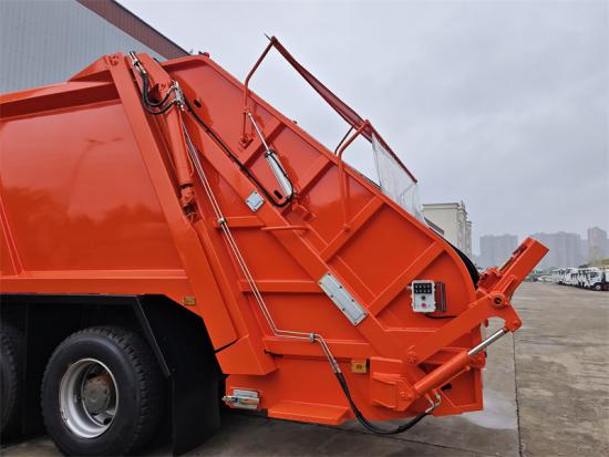 HOWO HW76, NX cabin is optionalHOWO TX артқы тиегіш қоқыс таситын көлік – тұрмыстық қатты қалдықтарды тиімді жинауға және тасымалдауға арналған арнайы санитарлық жабдық. Мықты HOWO TX оң жақ жетек шассиіне салынған ол 371 HP қозғалтқышымен және мол және сенімді қуат беретін 10 жылдамдықты беріліс қорабымен жабдықталған. Оның негізгі қызметі – озық сығымдау технологиясы арқылы бос қалдықтардың көлемін ықшамдау және азайту, бір реттік тасымалдау мүмкіндігін және пайдалану тиімділігін айтарлықтай арттыру, сонымен бірге санитарлық тазалауға жұмсалатын шығындарды тиімді азайту. Бұл күнделікті қалалық қалдықтарды шығару операциялары үшін тамаша шешім.