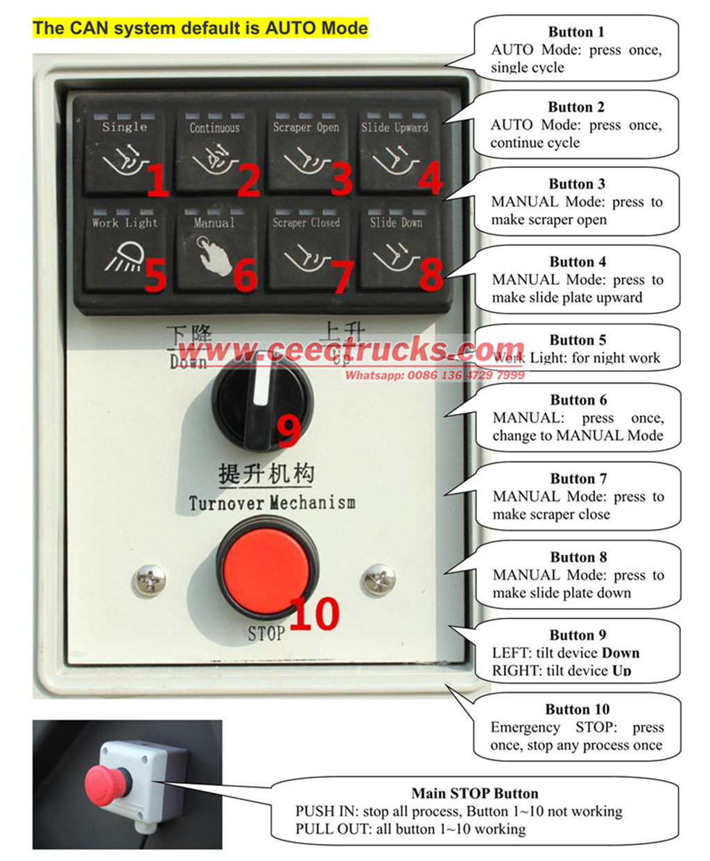 7 Жүктеу және түсіру жұмыстары автоматты түрде толтырылады және оны ешкім рұқсатынсыз реттемейді PTO жылдамдығы тым жоғары болған кезде, PTO немесе жанармай сорғысы зақымдалады, ал жылдамдық тым төмен болған кезде, жұмыс тиімділігіне әсер етеді;