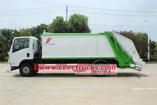 Та Compactor жүк көлігінен бас тарту Isuzu Elf 4x2 шассиіне негізделген Референттік бөлімде қоқыс жинау құрастыру, акуаторлық құрылғы және жұмыс жүйесі кіреді