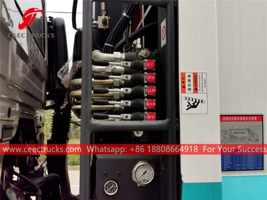 CEEC TRUCKS нығыздағыш қоқыс көлігі алға-артқа тасымалдау уақытын қысқартады және алдын алады қоқыс пен иістің таралуына жол бермейді және екінші рет ластануды болдырмайды ластанған сумен өндіріледі.
