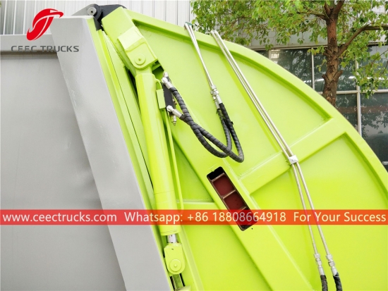 CEEC TRUCKS нығыздағыш қоқыс көлігі алға-артқа тасымалдау уақытын қысқартады және алдын алады қоқыс пен иістің таралуына жол бермейді және екінші рет ластануды болдырмайды ластанған сумен өндіріледі.