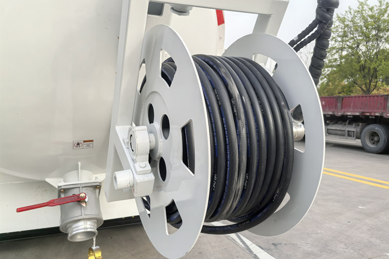 Көліктің цистернасының корпусы Q355 жоғары сапалы көміртекті болаттан жасалған. Цилиндр мен басы қалыңдығы 6 мм көміртекті болат пластинамен тікелей дәнекерленген дәнекерленген.Құрылымы берік. Резервуардың корпусы коррозияға қарсы материалдан жасалған және сұйықтық деңгейінің дабылы және жылдам ағызу құрылғысымен жабдықталған.