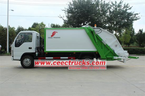 Isuzu 5 текше метр компрессорлық қоқыс жүк көлігі - бұл арнайы жасалған қоқыс жинайтын, сығымдау және тасымалдау құралы Isuzu 5cbm артқы локотажшы қоқыс машинасы Сығымдалған қоқыс шығарылған қоқыс жәшігі - Mini Elf 4x2, сол жақ қолмен шасси және 1 текше метр Бұл osuzu артта тиегіш қоқысты сығымдау механизмі арқылы қысады, себебі қоқыс көлемін азайту, осылайша жүктеме сыйымдылығын және қоқыстың тиімділігін арттыру