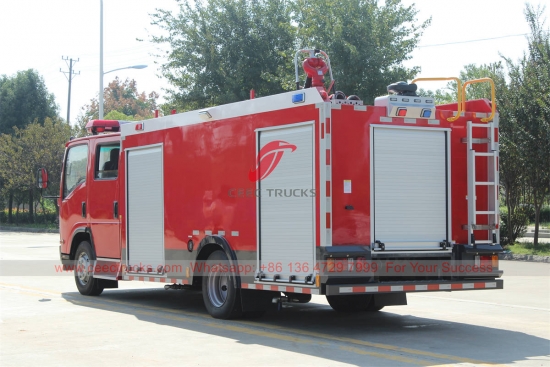 ISUZU ELF су көбікті өрт сөндіру көлігі, ISUZU ELF Left Hand Drive моделі 4x2 шасси, MLD 6 сатылы механикалық беріліс қорабы, ISUZU 190HP дизельдік қозғалтқышы, кескіндеме және логотиптер тәуелді талап.