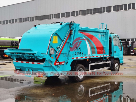 ISUZU 6 куб метр қоқыс компрессоры, жүк шассиінде ISUZU 130HP дизельді қозғалтқышы, MSB 6 ауысымдық беріліс қорабы қолданылады. Оңай жұмыс істеу үшін PLC басқару қорабы. Барлық кескіндеме және логотиптер клиенттердің талаптарына негізделген.