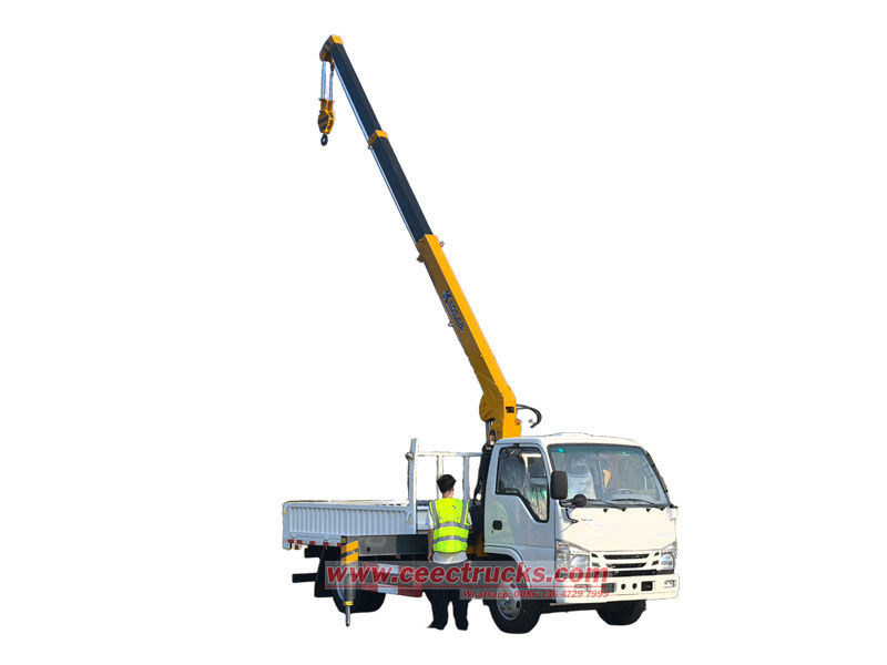 Кран таңдау үшін түзу тұтқаны немесе жиналмалы тұтқаны таңдауға болады. Isuzu жүк көлігіне орнатылған кран жебеден, айналмалы табақтан, жақтаудан, аяқтардан және басқа бөліктерден тұрады.