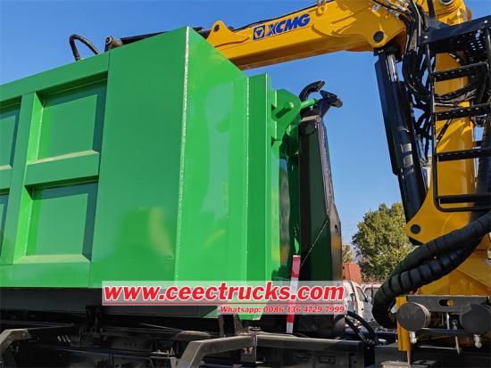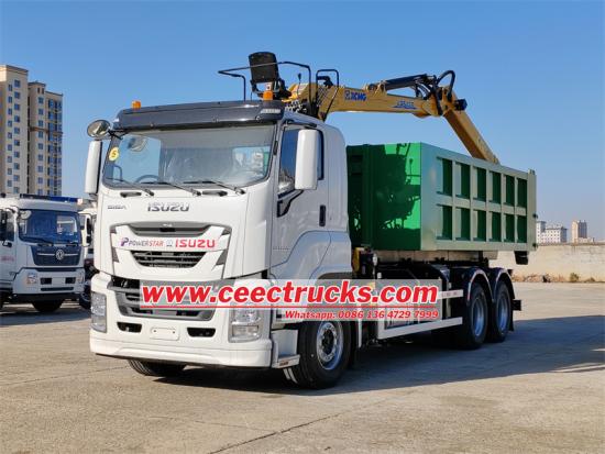 XCMG LQS120 knuckle crane with grabberТа Isuzu Ауыр кері жүк көлігі, контейнері бар жүк көлігі XCMG LQS120 Ly Loader Crane-мен жабдықталған, бұл ауыр өтініштерге арналған қуатты және жан-жақты машина Жиналмалы қол кран, әсерлі көтергіш қабілеттілік және арнайы сынықтарға арналған сынықтар осы жүк машинасын салдардан, құрылысқа қайта өңдеуге дейін құнды активке айналдырады Оның мылжың шассиі, қуатты қозғалтқыш және тегіс беріліс одан әрі өз мойнындағы мүмкіндіктерін арттырады, ең қажет, тиімді, тиімді ортада тиімді жұмыс істеуді қамтамасыз етеді
