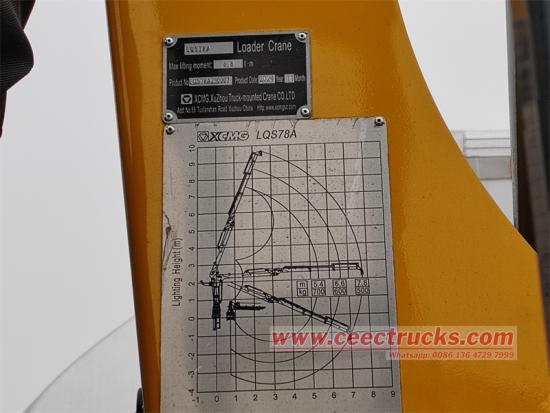 Көлікте орнатылған XCMG LQS78A жүк тиегіш кранды грейфер кран ең көз тартады. Бұл кран озық гидравликалық технологияны және дәл механикалық құрылымды біріктіреді, оның максималды көтеру моменті 6,8TM, максималды көтеру салмағы 700 кг, максималды көтеру биіктігі 9,8 м, кран ұзындығы 7,8 м және таңқаларлық айналу бұрышы 380 ° , ол тұйықсыз жан-жақты жұмыс істеуге дерлік қол жеткізе алады. Кранның ұшы бөренелерді ұстауға арналған екі тырнақты ұстағышпен жабдықталған. Максималды ашылмаған ұстау өлшемі - 1220 мм. Ол салмағы 1 тоннаға дейін жететін бөренелерді ұстай алады, бұл орман шаруашылығы ресурстарын басқару тиімділігін айтарлықтай арттырады.