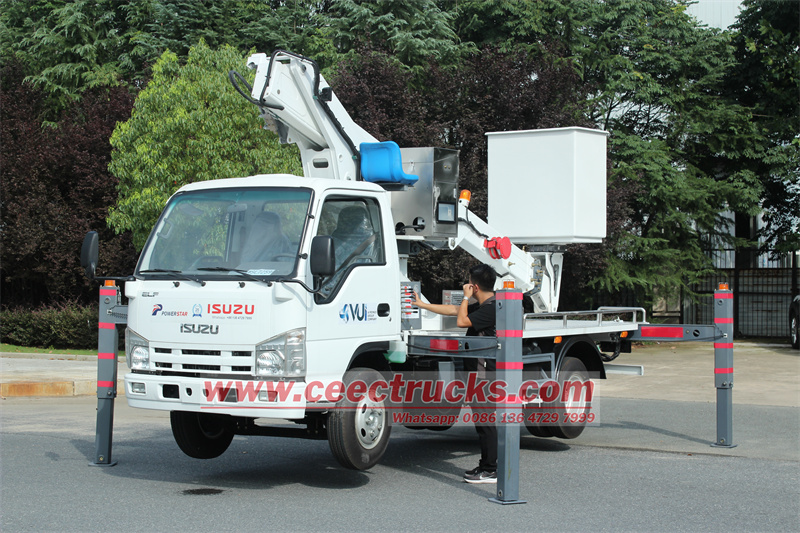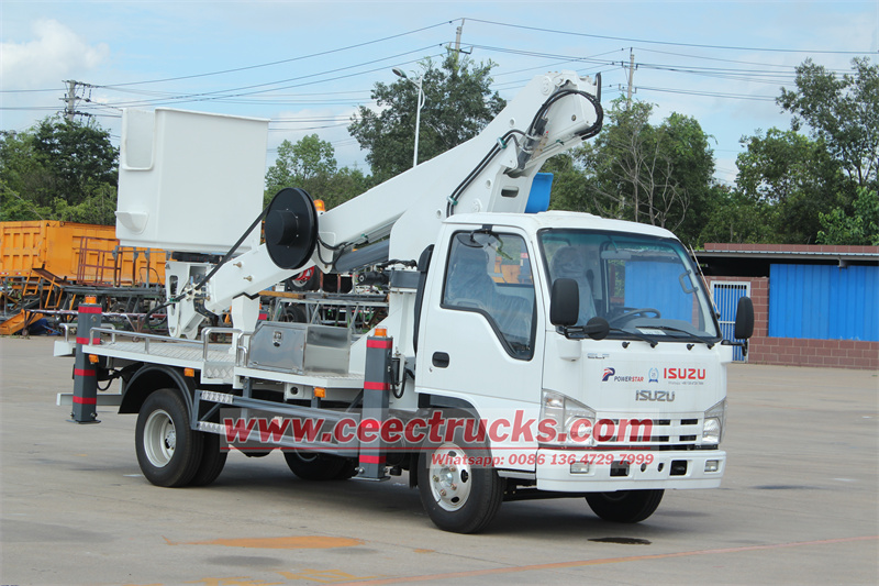 Бұл Manlift жүк көлігі жапон Изузю шағын эльф шассиінен және CEEC TSEC машиналарынан тұрады Әуе тежегіші және абсцесс гидравликалық аэроформасы және ABS көлігі стандартты, көпфункционалды руль, мықтап, сол жақтағы диск және оң қол жетегі, заманауи дененің дизайны, төмен отын шығыны, күші төмен шығындар және мықты маневрлік Маниллифт жүк көлігі 12 метр биіктікке 250 кг жұмыс күшін және материалдарды көтере алады Шелек түбінің максималды биіктігі - 12 метр ISUZU әуе платформасы жүк көлігі - бұл құрылыс жұмыстары, кескіндеме, техникалық қызмет көрсету және жөндеу жұмыстары, сонымен қатар ағаш кесу, үлкен белгілерді орнату, кино немесе театрлар үшін жарықтандыру және т.б Техникалық сипаттамаларға және конфигурацияларға қойылатын кез-келген арнайы талаптарды талқылауға және тиісінше қанағаттандыруға болады