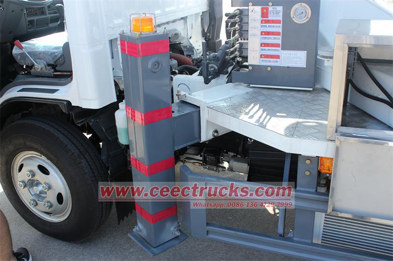 Ceec Жауын-шашын: 12m Aerial Mover Bucket импортталған кері клапан және гидравликалық цилиндр, тегіс кері және икемді операция; Жұмыс істеп тұрып, тұрақтылықты жақсарту үшін екі жақты баланстық клапанмен жабдықталған Төрт H-Type және гидравликалық аутригтермен аутригаторлар мен омыртқалық құралдары және гидравликалық ағындар жеке немесе синхронды түрде түсіре алады, ал төмендетілуі мүмкін, аутригтерлер жұмыс істеп тұрған қолбасшылығымен, маңдайқа байланысты жұмыс істемейді Isuzu Mini Elf 12m Гидравликалық машиналар 12 м гидравликалық көлігі бірнеше қорғаныс жүйесі бар гидравликалық жүк көлігі, соның ішінде көп қорғаныс, шектеуден қорғау, төтенше жағдайда тоқтату түймесі, гидравликалық жүйені, гидравликалық жүйені, гидравликалық жүйені және қорғаныс құралдарының қауіпсіздігін қамтамасыз ету үшін қорғаныс құралы.