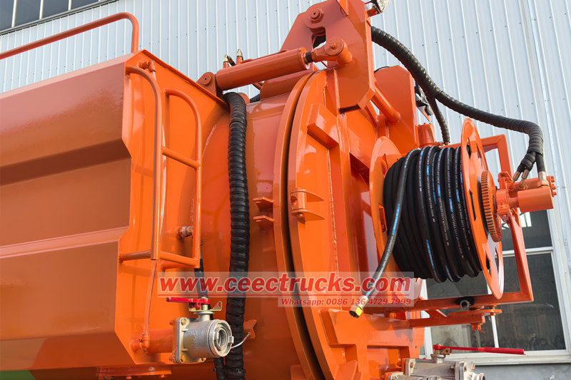 ● Көп функциялы интеграция: Ол жоғары қысымды тазалау және ағынды суларды сору функцияларын біріктіреді. Жоғары қысымды су тапаншасы құбырдағы барлық бітелулерді тарата алады, ал ағынды суларды сору жүйесі тереңдету тапсырмасын тиімді орындау үшін оларды сорып алады.