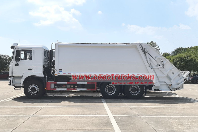 Shacman 25cbm артқы тиегіш қоқыс таситын машина (сонымен қатар Shacman 6x4 қоқыс нығыздайтын жүк машинасы, Shacman F3000 артқы тиегіш ват жинағыш машинасы, Shacman 25 текше метр қоқыс сығымдағыш машинасы, Shacman бөлінген артқы тиегіш қоқыс таситын көлік, Shacman 10 дөңгелегі бар қоқыс жинағыш деп те аталады) қоқысты жинау, тасымалдау және шығару үшін арнайы қолданылатын санитарлық көліктің жаңа түрі.