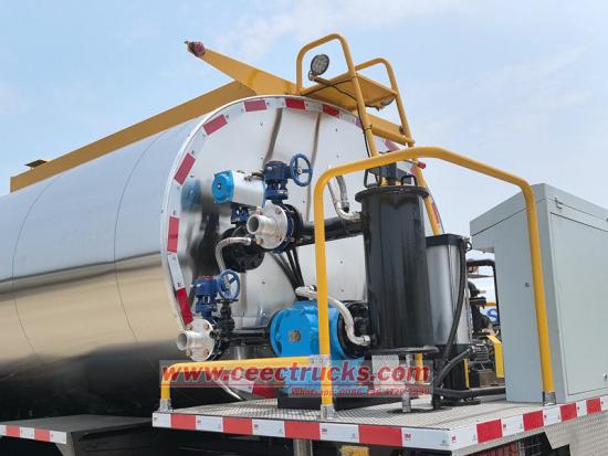 Shacman жол асфальт дистрибьюторының цистернасы негізгі құрамдастардың бірі болып табылады. Ол негізінен жоғары берік көміртекті болаттан немесе жоғары сапалы тот баспайтын болаттан жасалған. Ол тамаша қысымға және соққыға төзімді және күрделі жол жағдайларында тасымалдауға және пайдалануға бейімделе алады. Резервуар екі қабатты құрылым болып табылады, ортасында жоғары тиімді жылу оқшаулағыш материалдары бар. Жетілдірілген электр жылыту жүйесімен ол асфальттың температурасын 180-220 ℃ деңгейінде дәл ұстай алады, өте аз температура ауытқуы диапазонымен, асфальттың бөлінуін және қатып қалуын тиімді болдырмайды, оның өтімділігін қамтамасыз етеді және құрылыс сапасына кепілдік береді.