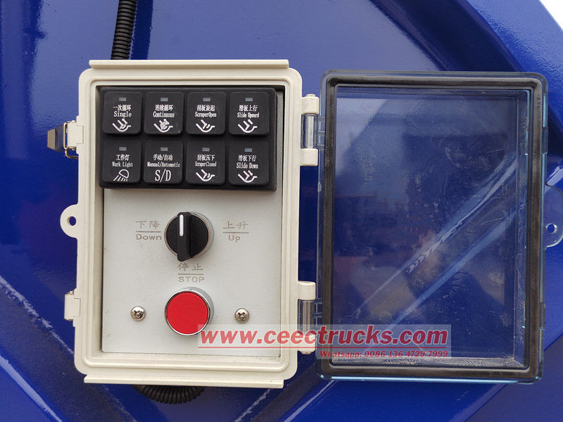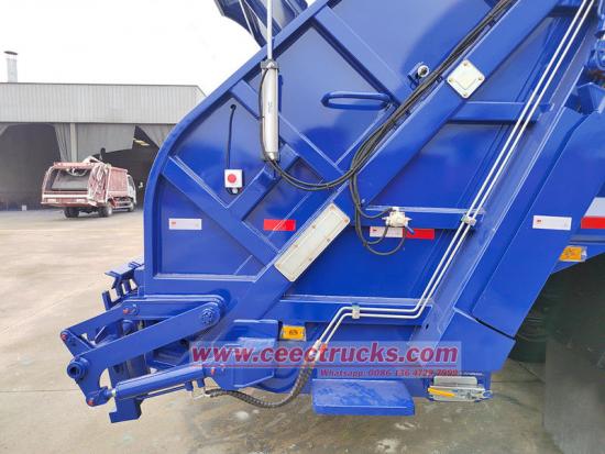 Көлік толық гидравликалық жетек жүйесімен жабдықталған, бұл операторларға қоқыстарды тиеу, нығыздау және түсірудің бүкіл процесін басқару пульті немесе сымсыз қашықтан басқару пульті арқылы аяқтауға мүмкіндік береді, бұл еңбек сыйымдылығын азайтады. Сонымен қатар, көлік нақты уақыт режимінде контейнердің толықтығын бақылайтын, тығыздауды автоматты түрде тоқтататын және шамадан тыс жүктемені болдырмау үшін ескерту беретін сенсормен жабдықталған. Қауіпсіздік үшін артқы есікте тасымалдау кезінде ағып кетуді болдырмайтын гидравликалық құлыптау механизмі бар. Апаттық тежеу жүйесі мен аударылып кетуге қарсы құрылғы көлік жүргізу қауіпсіздігін қамтамасыз етеді.